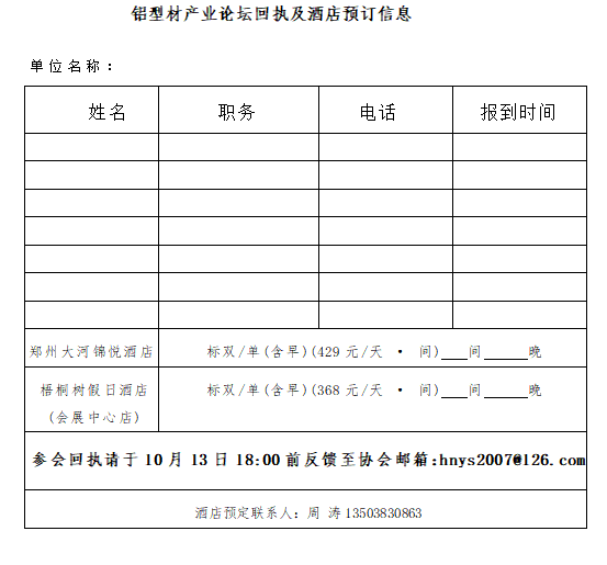 附件 : 铝型材产业论坛回执及酒店预订信息