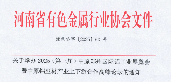 为推动制造业高端化、智能化、绿色化发展的战略部署,充分发挥以中原地区为主的铝工业资源与产业优势,促进铝产业链协同创新与全球合作,在2021年、2023年两届展会成功举办的基础上,经研究决定,于2025年10月15-17日在郑州国际会展中心举办“2025(第三届)中原郑州国际铝工业展览会”(以下简称“展会”),同期举办中原铝型材产业上下游合作高峰论坛(以下简称“论坛”)。